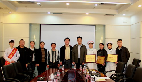 最后,赖建生院长为医院参加本次活动的三个试点科室神经内科、内分泌科和门诊部颁发了牌匾,并与江门中医药学校留影。