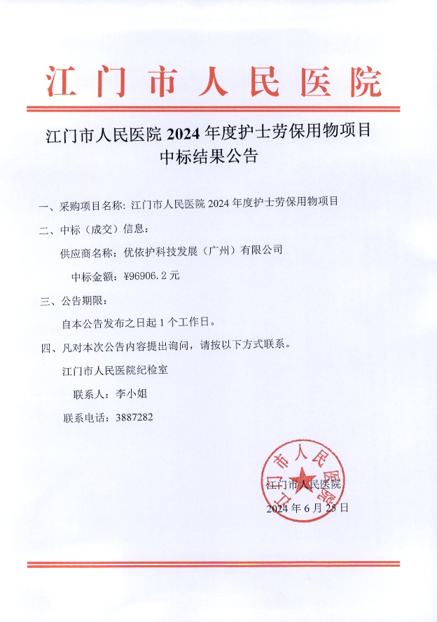 江门市人民医院2024年护士劳保用物项目中标结果公告