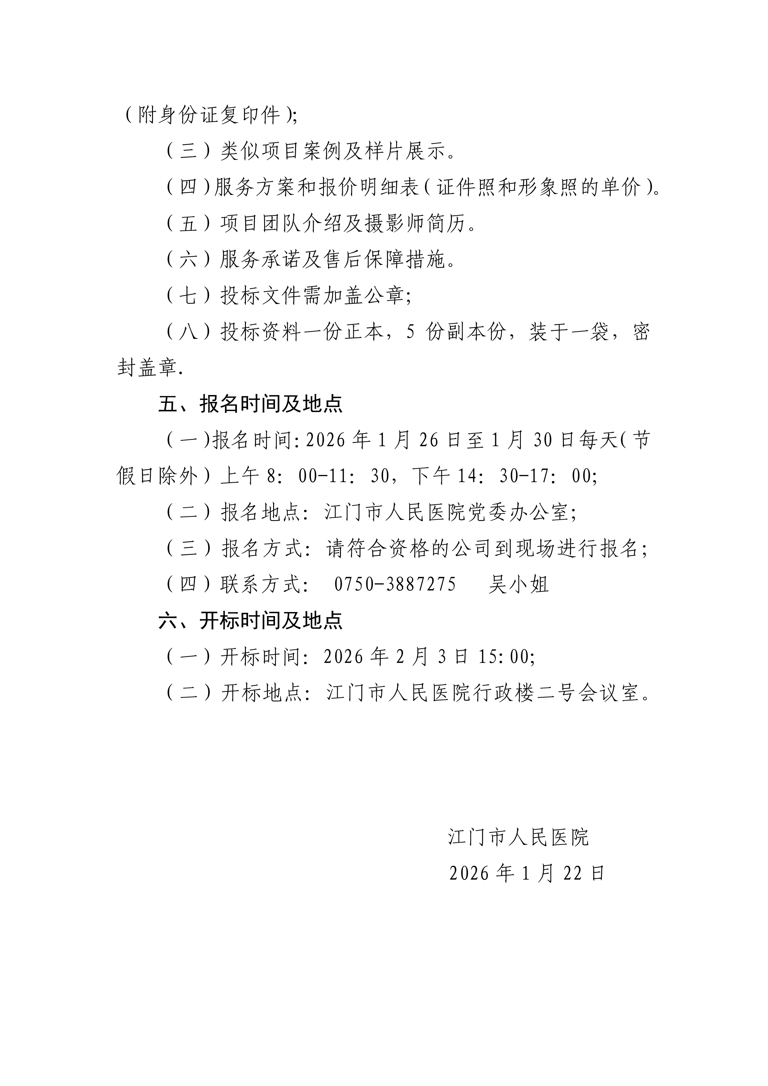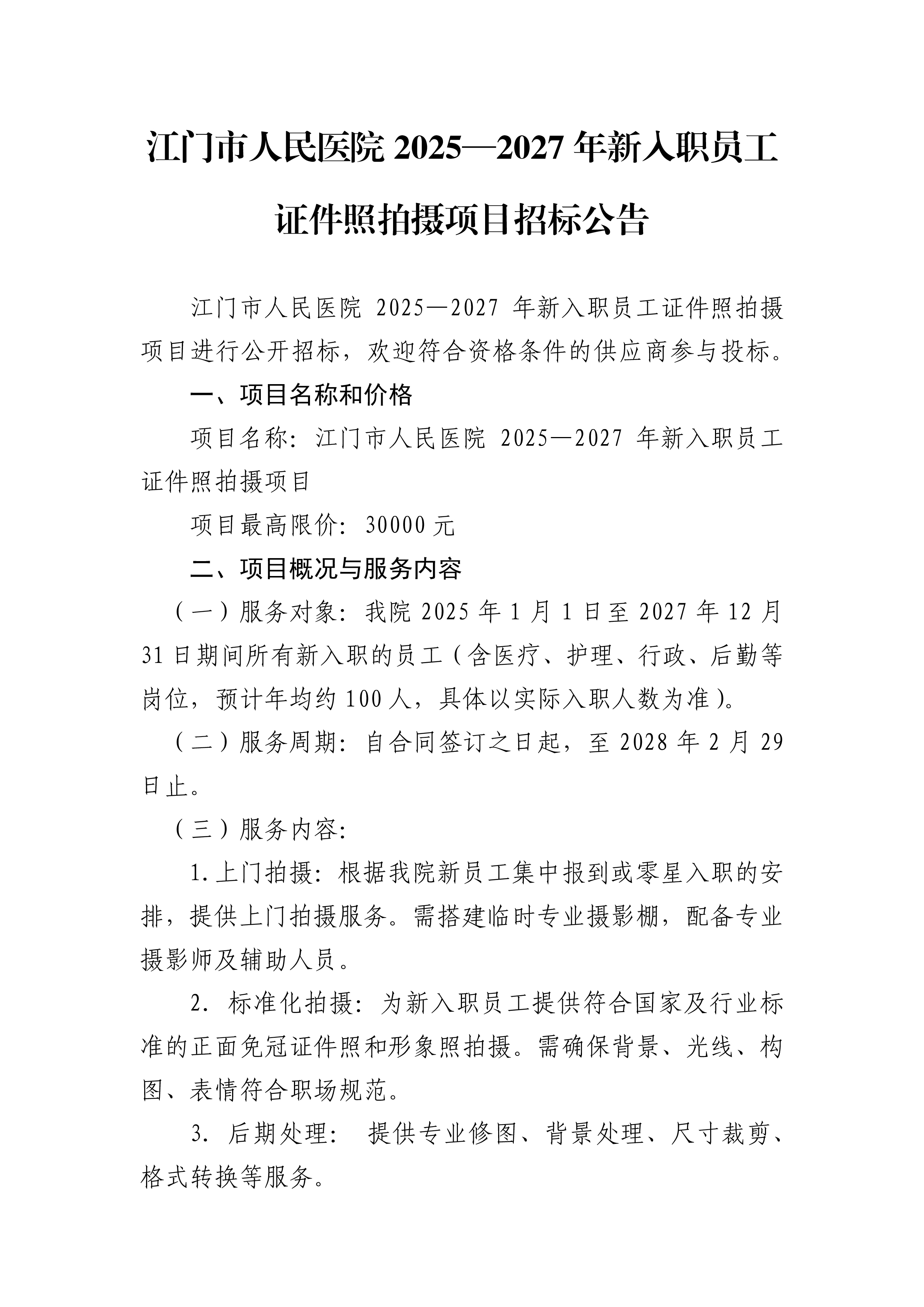 江门市人民医院2025一2027年新人职员工证件照拍摄项目招标公告