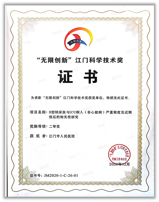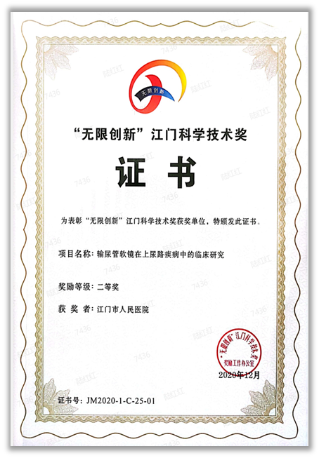 2020年“无限创新” 江门科学技术奖二等奖